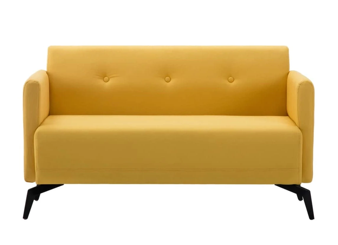 Uniwersalny mebel do każdego domu! Dwuosobowa sofa Margaret w żółtym kolorze sprawdzi się w salonie lub jako dodatkowy mebel przeznaczony do wypoczynku, który można ustawić w dowolnym miejscu w domu. Przeznaczony jest do siedzenia lub leżenia.