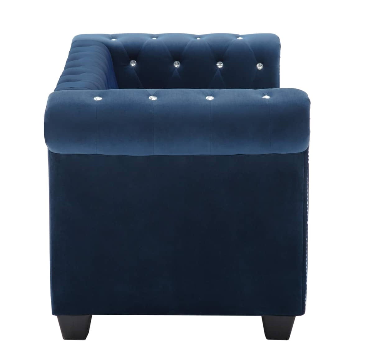 Dwuosobowa sofa w kolorze niebieskim glam