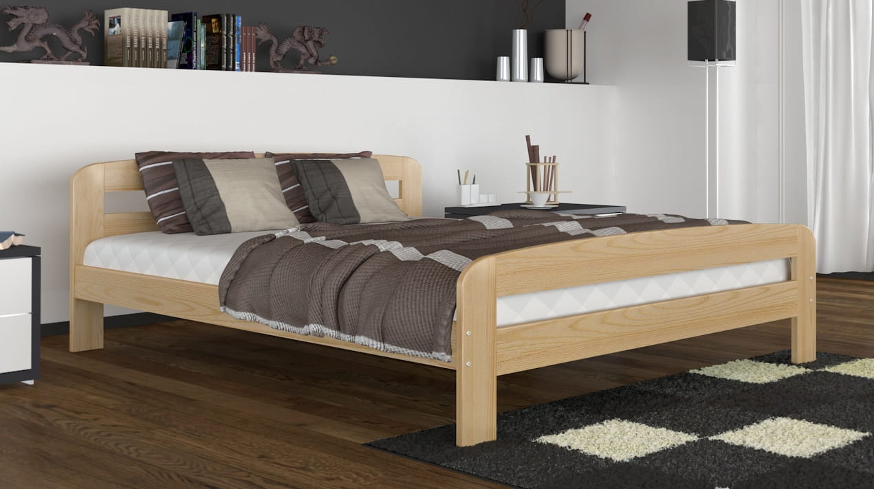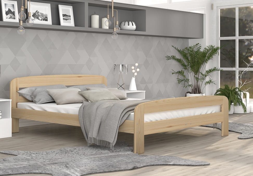 To 2-osobowe łóżko wyprodukowane z wysokiej jakości drewna - cechuje się niezwykle solidną i trwałą konstrukcją. Stelaż wykonano z mocnych, sosnowych desek. Jest to łóżko parterowe, które ułatwia wstawanie. Przestrzeń pod łóżkiem gwarantuje natomiast właściwą wentylację materaca od spodu. Dzięki optymalnemu rozmiarowi 180 x 200 cm - mebel ten zapewni parze osób błogi, zdrowy sen, niezakłócony nocnymi przekomarzaniami o każdy centymetr powierzchni.