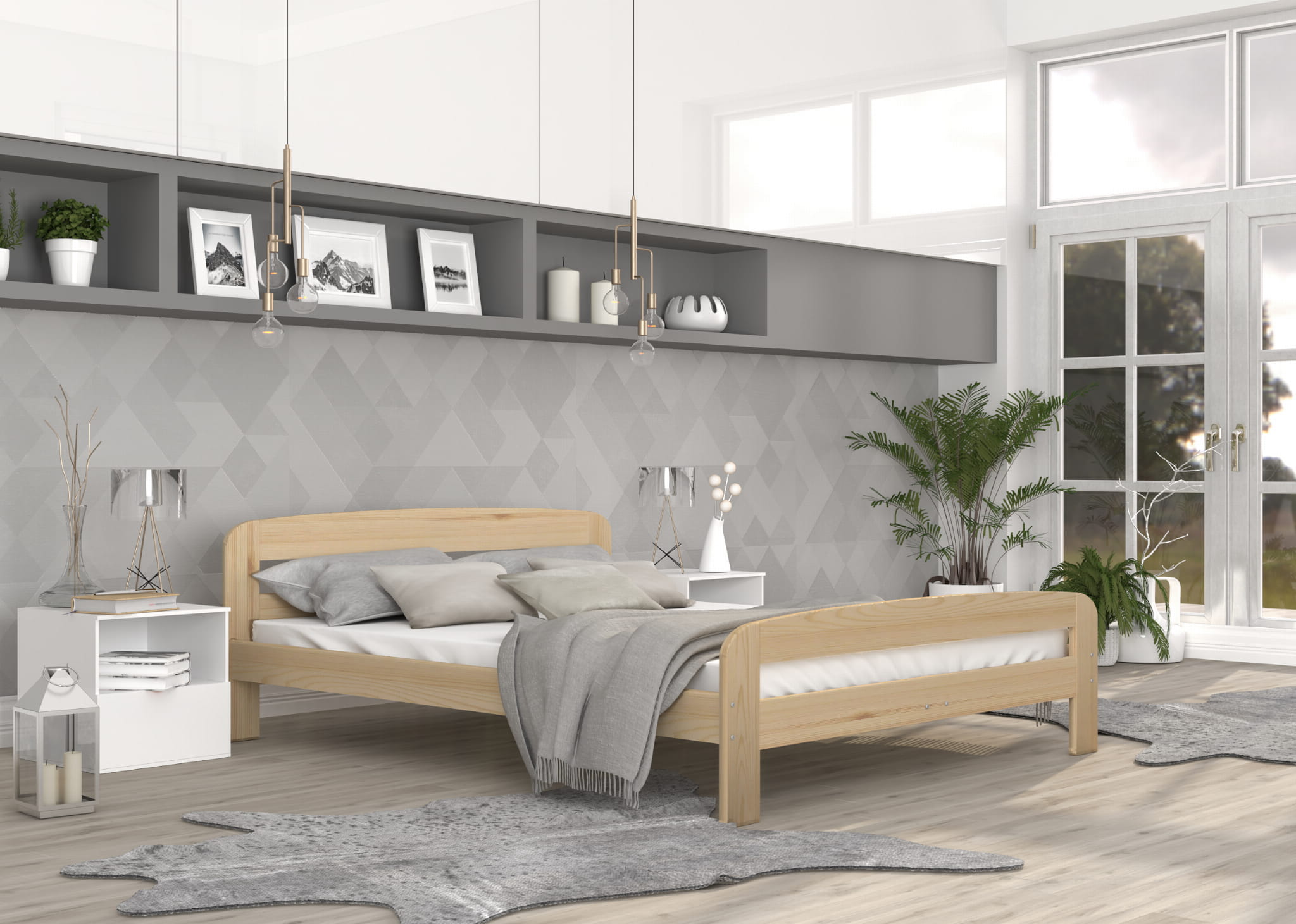- Łóżko wyposażone w stelaż z desek sosnowych