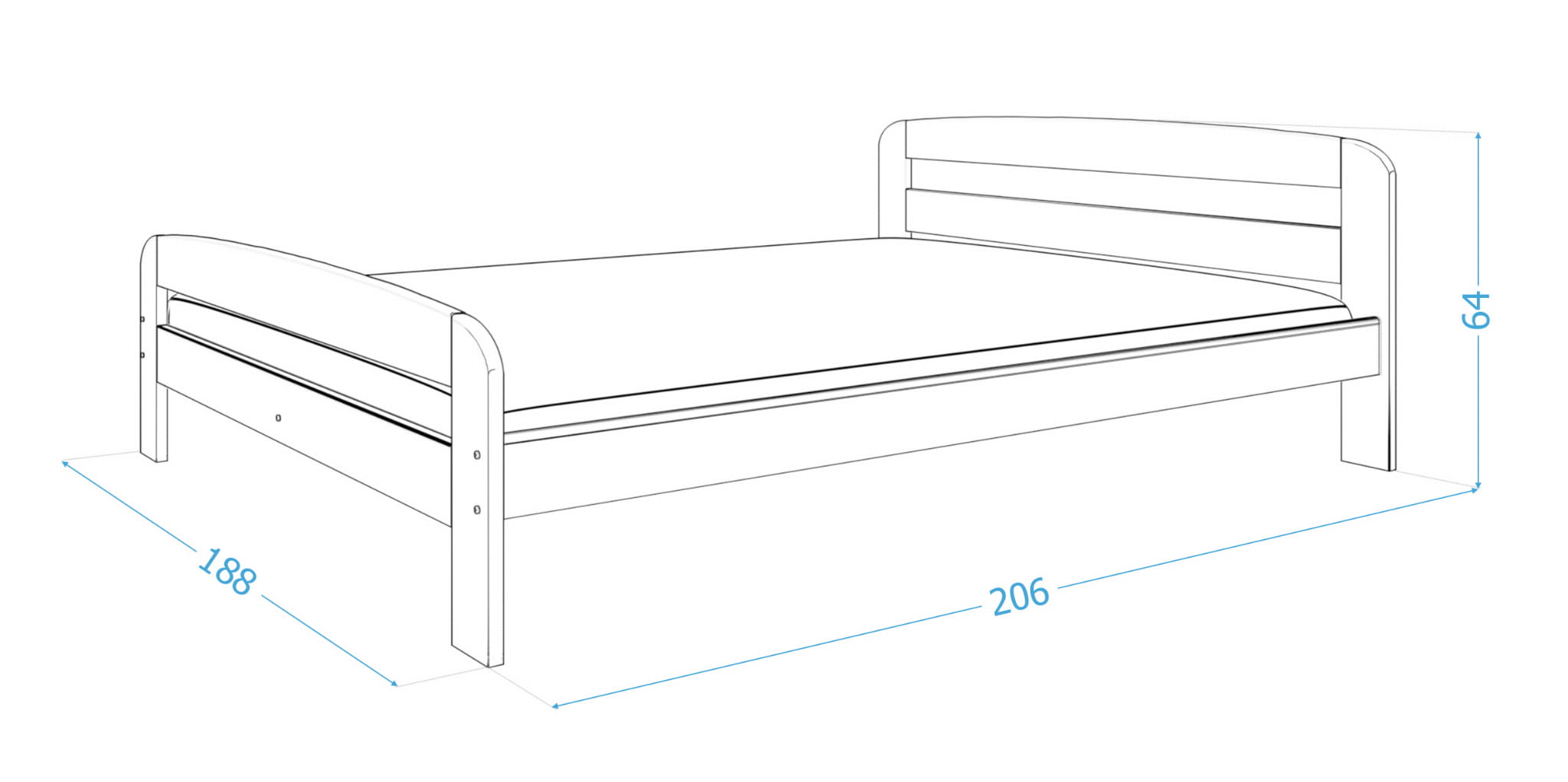 - powierzchnia spania (pod materac) - 200 cm x 180 cm