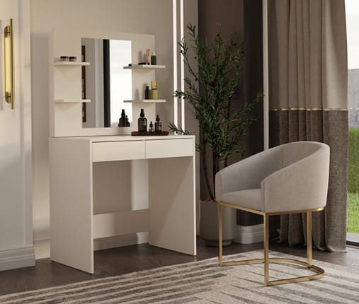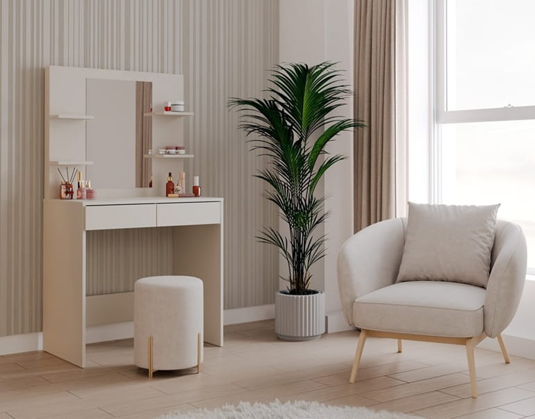 Toaletka do sypialni z lustrem, która kończy z kosmetycznym chaosem