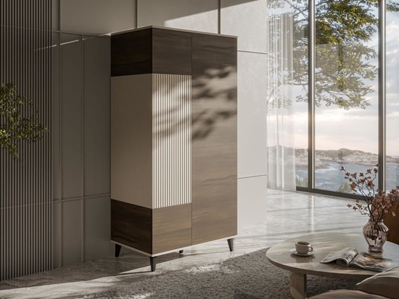 Elegancka szafa na ubrania kaszmir z orzechem, która uporządkuje Twoją garderobę