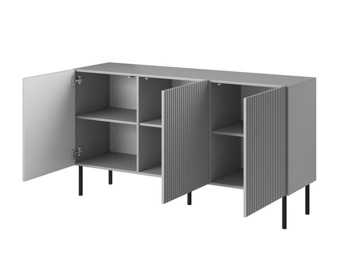 Komoda o długości 150 cm stanowi doskonałe rozwiązanie dla tych z Państwa, którzy cenią sobie zarówno nieprzeciętny styl, jak i praktyczność. Oferuje sporo miejsca do przechowywania, co sprawia, że utrzymanie porządku stanie się łatwiejsze. Komoda ryflowana Kioto doskonale sprawdzi się zarówno w sypialni, salonie, jak i w przedpokoju.