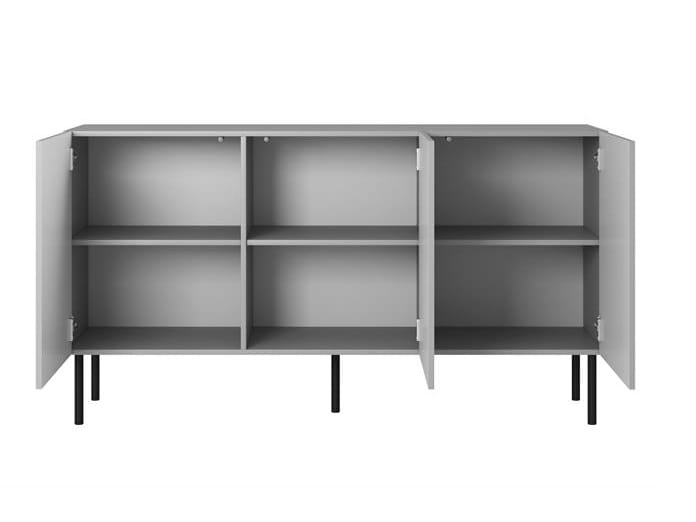 Specyfikacja techniczna komody Kioto podkreśla jakość wykonania: płyta meblowa laminowana, MDF okleinowany, nóżki metalowe. Te niezwykle trwałe materiały gwarantują solidność i trwałość mebla nie ujmując jego estetyce. Jasny popiel w połączeniu z subtelnymi, czarnymi akcentami nadaje komodzie Kioto wyrafinowanego wyrazu, który doskonale wpisze się w nowoczesne aranżacje wnętrzarskie.