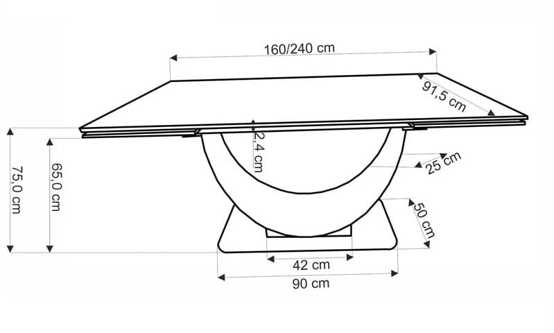 - Wymiary stołu: wysokość - 75 cm, szerokość - 92 cm, długość - 160÷240 cm