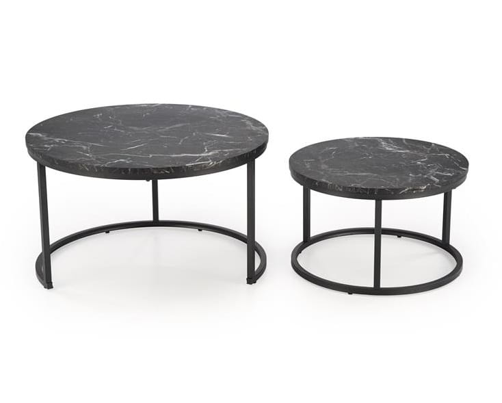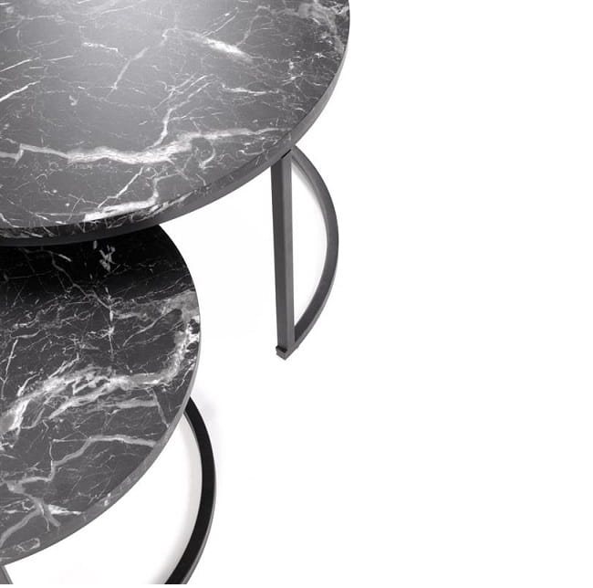 Elegancki komplet okrągłych stolików marmur