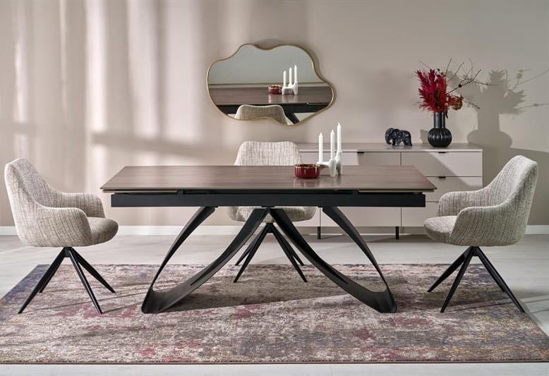 Dobrze dobrane krzesła potrafią całkowicie odmienić charakter jadalni, ale prawdziwa magia dzieje się, gdy skomponujesz je z odpowiednim stołem. Jeśli szukasz zestawu, który będzie działał harmonijnie, warto rozważyć stoły w stylu industrialnym z metalowymi nogami lub nowoczesne konstrukcje z blatem w ciepłych odcieniach drewna. Beżowa tapicerka świetnie współgra z naturalnymi materiałami, a czarny stelaż będzie doskonałym echem metalowych elementów stołu. Możesz postawić na stół z okrągłym blatem, który podkreśli kameralny charakter przestrzeni, albo na dłuższy, prostokątny model, który stworzy reprezentacyjną strefę dla większej rodziny czy gości.