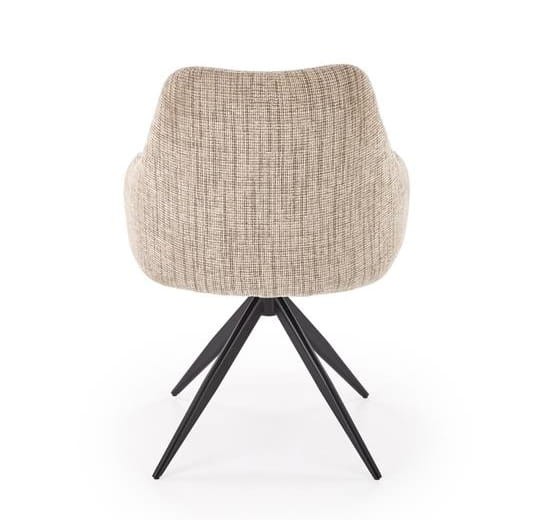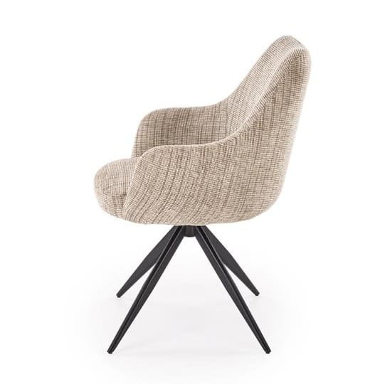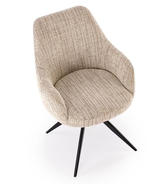 Beżowe krzesło z podłokietnikami Leno łączy w sobie wszystko, czego szukasz w nowoczesnym meblu do jadalni. Tapicerowana, miękka powierzchnia w neutralnym odcieniu wprowadza ciepło, a czarny metalowy stelaż malowany proszkowo dodaje charakteru bez przytłaczania przestrzeni. Ale prawdziwą gwiazdą tego rozwiązania jest obrotowe siedzisko - funkcja, która sprawia, że zwykłe krzesło staje się fotelem, do którego chce się wracać.