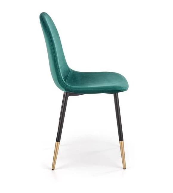 Zielone krzesło Claret to bryła o zaokrąglonych krawędziach, która bez trudu znajdzie swoje miejsce w przestrzeni klasycznego salonu, jadalni lub innego pomieszczenia zaaranżowanego w stylu glamour. Mebel zaopatrzony jest w wysokie nóżki zwężające się ku dołowi. Elementy te wykonane są ze stali o przekroju okrągłym, w zasadniczej części pomalowanej techniką proszkową na kolor czarny. Dolna ich część to zakończone stopami kształtowniki chromowane na kolor złoty. Właśnie ta barwa, połączona z odcieniem zielonym tkaniny obiciowej, jest cechą charakterystyczną stylu glamour.