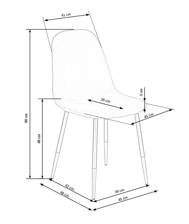- Wymiary: wysokość - 88 cm, szerokość - 45 cm, głębokość - 48 cm, wysokość od podłoża - 48 cm