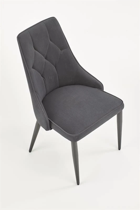 Eleganckie szare krzesło do jadalni z przeszyciami, velvet