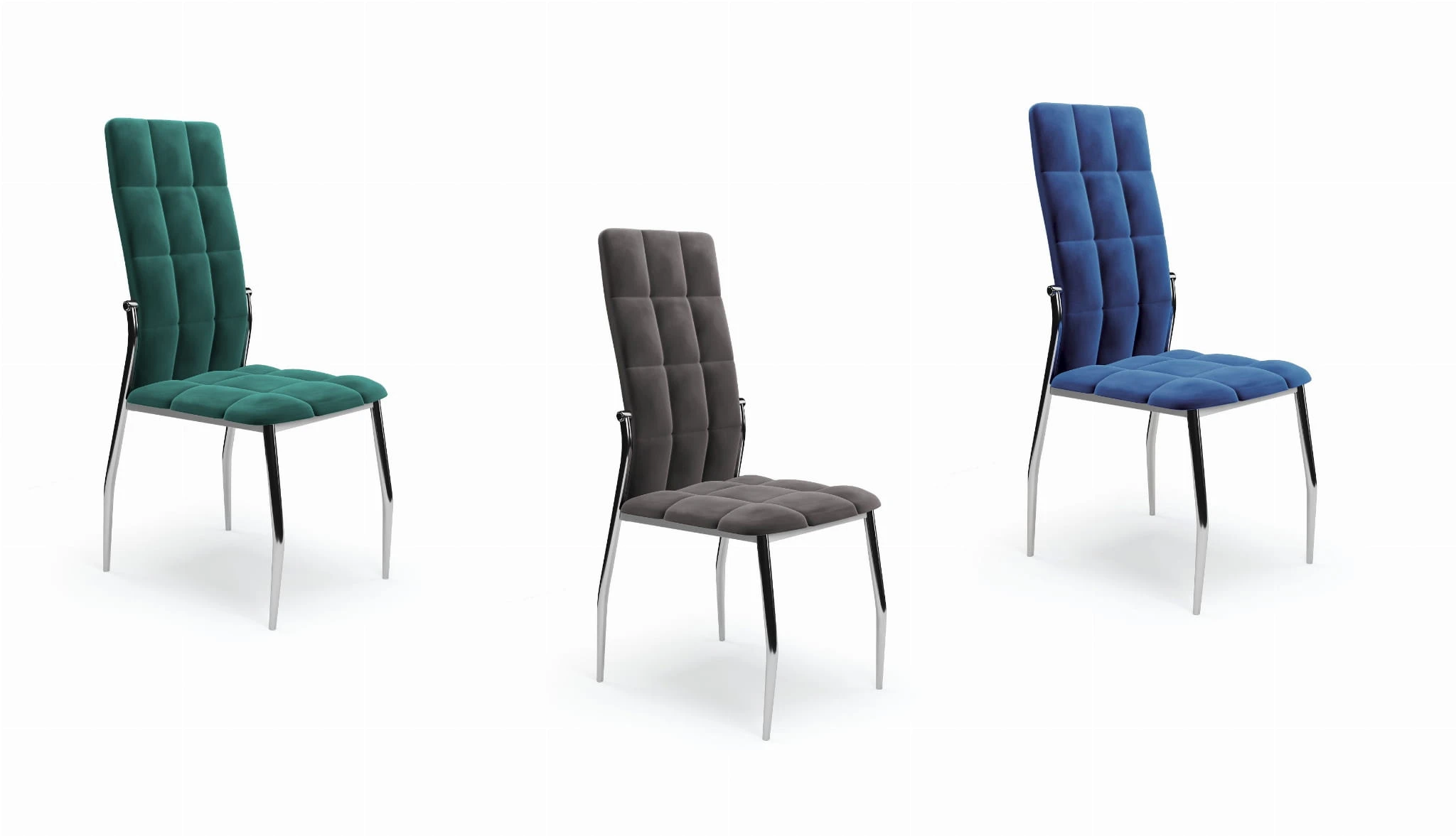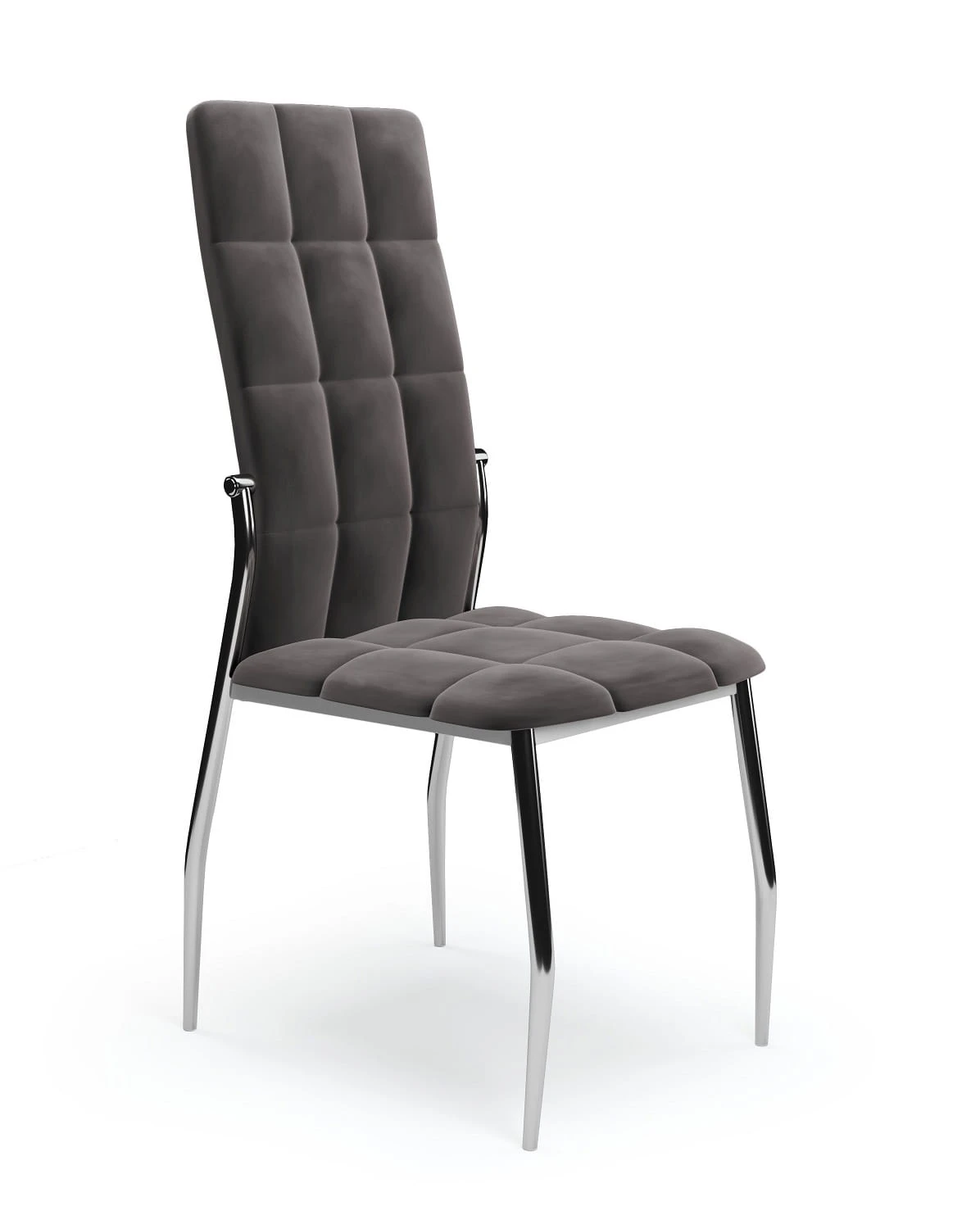 A wyróżnia się on niebanalną, designerską konstrukcją wykonaną ze stali chromowanej, pięknie zaprojektowanym siedziskiem z oparciem, ozdobionymi dekoracyjnymi, geometrycznymi pikowaniami. Na Państwa uwagę zasługuje również piękna kolorystyka. Kolor szary jest niezwykle elegancki! Szczególnie, gdy subtelnie rozświetla go srebrny blask metalowego stelaża. Wspaniały kontrast! Krzesło tapicerowane jest niezwykle ładną, przyjemną w dotyku, miękką tkaniną velvet. Te wszystkie cechy, skupione w jednym krześle - wywołują efekt wow!