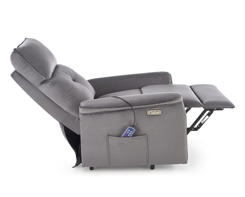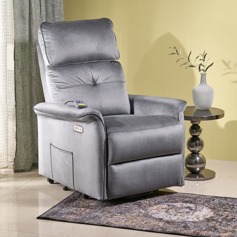 Wbudowana funkcja masażu przekształca Twój salon w prywatne spa, gdzie każdego dnia możesz cieszyć się profesjonalnym masażem. Precyzyjnie zaprojektowane punkty masujące pracują nad rozluźnieniem napięć mięśniowych, poprawą krążenia i ogólnym samopoczuciem. Ten fotel z funkcją masażu to inwestycja w Twoje zdrowie, która zwraca się każdego dnia poprzez lepszą jakość życia. Dodatkowy komfort zapewnia praktyczne gniazdo USB wbudowane w podłokietnik, dzięki któremu możesz ładować swoje urządzenia, nie przerywając relaksu. Wysuwany podnóżek dopełnia całości, oferując pełne wsparcie dla nóg i umożliwiając przyjęcie najbardziej komfortowej pozycji.