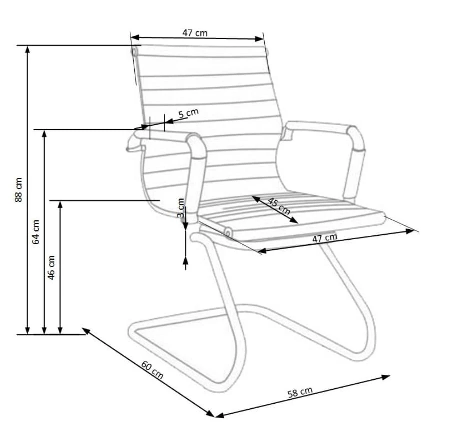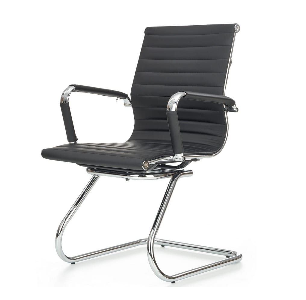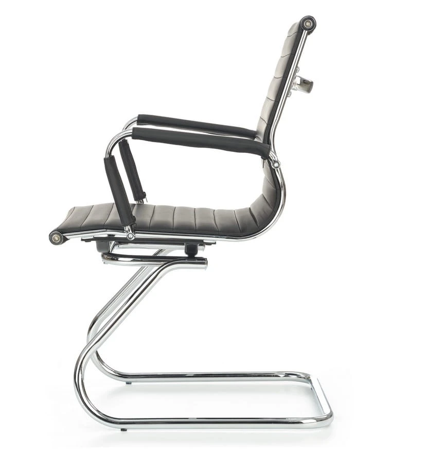 Prezentowany model to fotel na płozach. O ile często wybiera się fotele biurowe na kółkach, dzięki którym łatwo można przemieszczać się po gabinetowej powierzchni, o tyle rozwiązanie to nie jest tym idealnym dla wszystkich. Szczególnie, gdy w biurze nie ma wystarczającej przestrzeni, by poruszać się na fotelu odpychając nogami, lub gdy nie ma potrzeby korzystania z funkcji obrotowości.