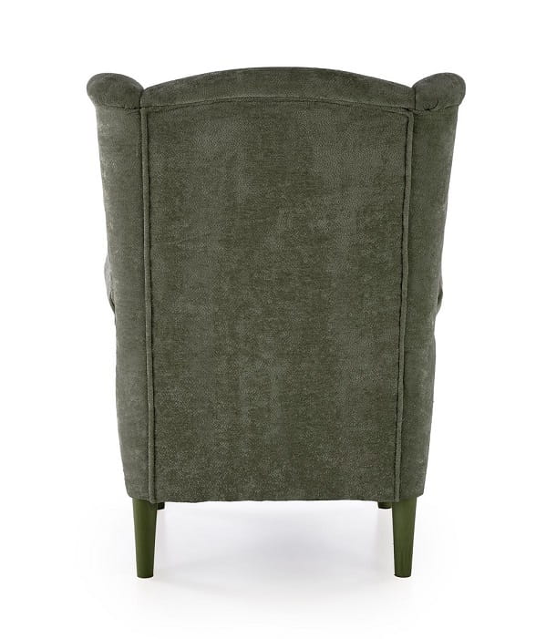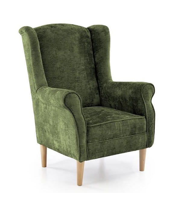 Fotel uszak Herme to kwintesencja skandynawskiego designu - minimalistyczna elegancja spotyka się z maksymalnym komfortem. Głębokie, obszerne siedzisko otula Cię miękką, aksamitną w dotyku tkaniną w głębokim, soczystym oliwkowym odcieniu, który wprowadza do wnętrza element natury i spokoju. Ergonomicznie wyprofilowane oparcie idealnie podpiera kręgosłup, a charakterystyczne "uszy" po bokach tworzą kameralną atmosferę, odcinając Cię od zewnętrznych bodźców. Wysokie podłokietniki fotela wypoczynkowego Herme zostały zaprojektowane z myślą o Twoim komforcie - pozwalają wygodnie oprzeć ręce podczas lektury ulubionej książki czy rozmowy telefonicznej. Naturalne, jasne drewniane nóżki nie tylko doskonale kontrastują z zielenią obicia, ale także zapewniają stabilność i ułatwiają utrzymanie czystości pod meblem.