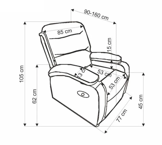 - Wymiary: szerokość - 88 cm, głębokość - 90÷160 cm, wysokość - 105 cm, wysokość siedziska - 45 cm