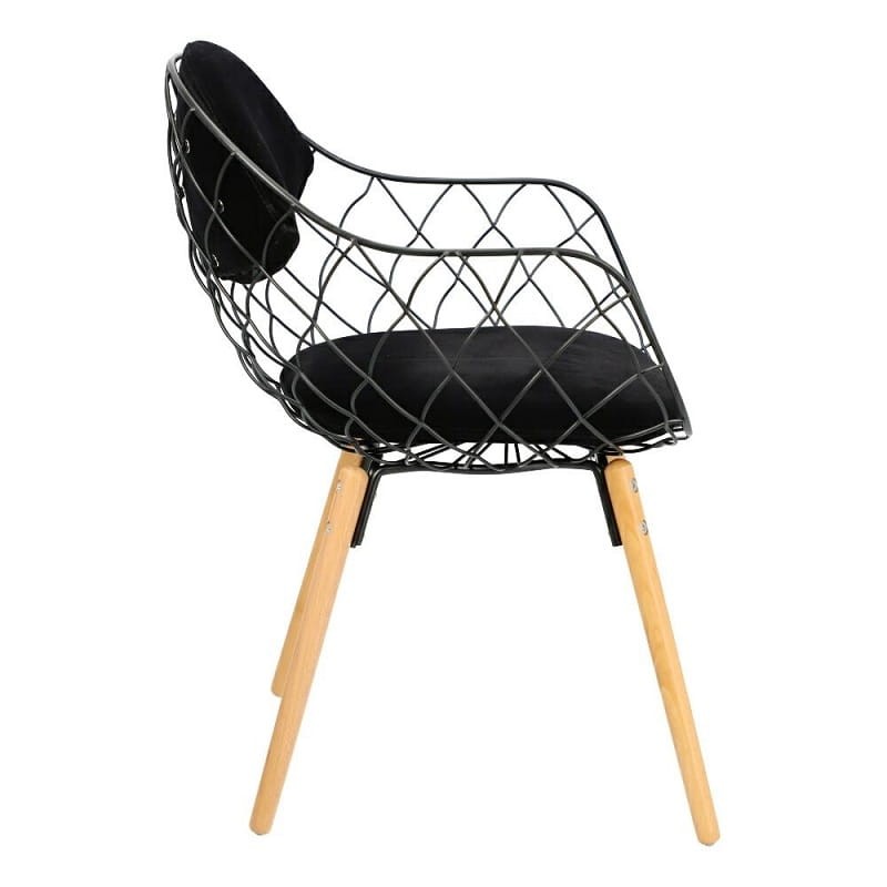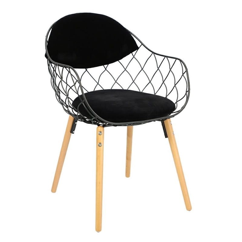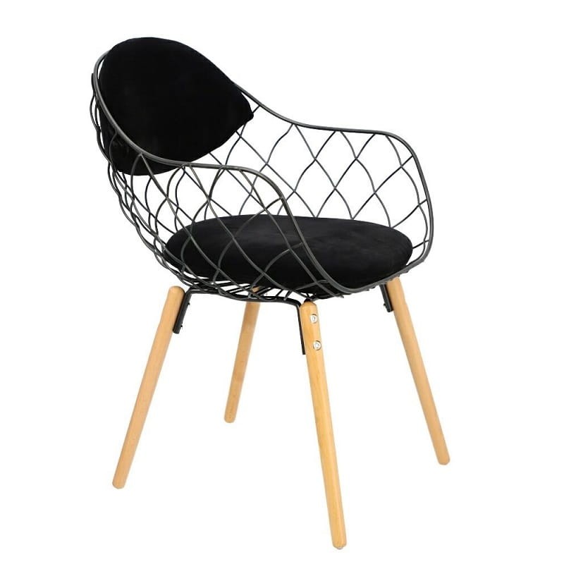 Siedzisko krzesła zostało zrobione z metalu, tak, aby swoim kształtem przypominać pleciony kosz. Na oparciu oraz siedzisku zastosowano miękkie i delikatne poduszki, które zapewniają komfort i wygodę. Poduszki wypełnione są gąbką, natomiast obite zostały wytrzymałą tkaniną. Poduszka na siedzisku przymocowana jest za pomocą rzepów, natomiast na oparciu przytwierdzona jest za pomocą prawie niewidocznych zatrzasków. Podstawa krzesła to bukowe, olejowane nogi, które zapewniają stabilność.