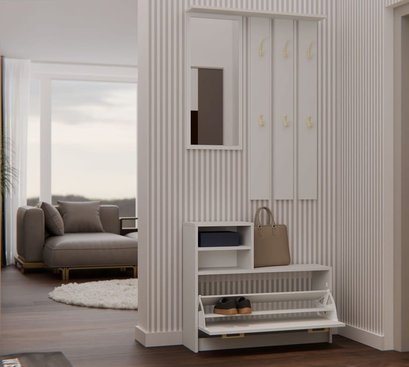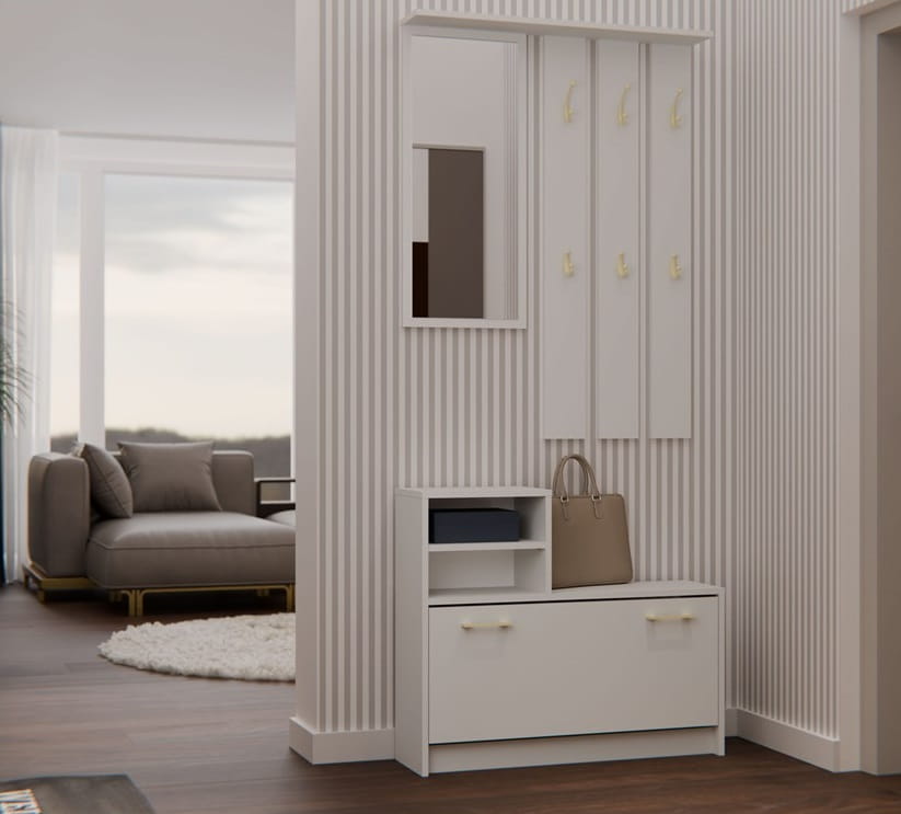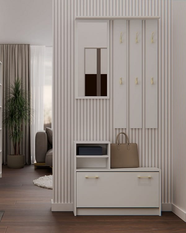 - Oszczędność miejsca: Kompaktowy design sprawia, że Gerda świetnie sprawdzi się nawet w niewielkich przedpokojach.