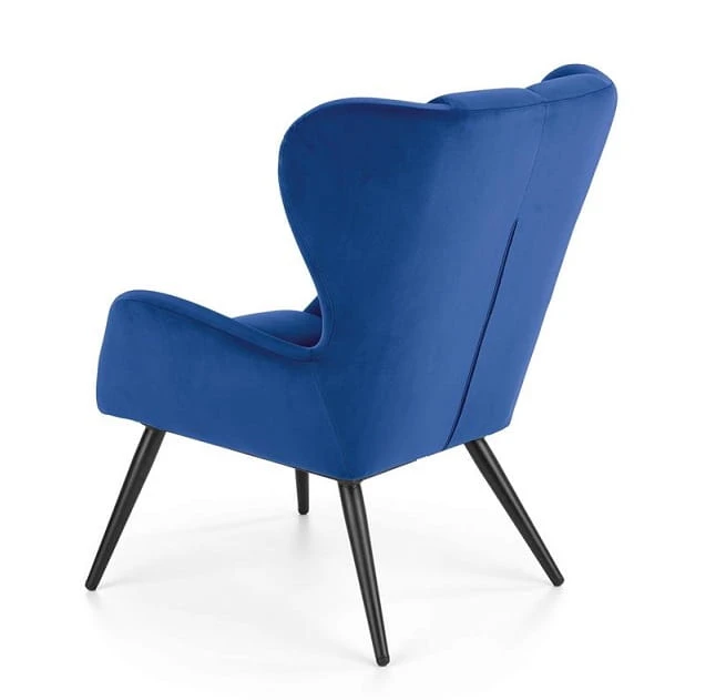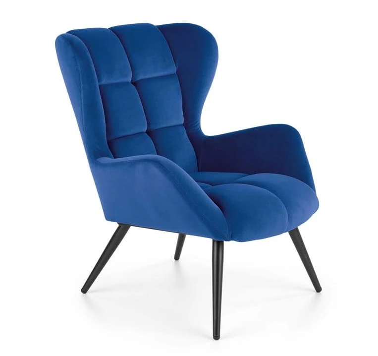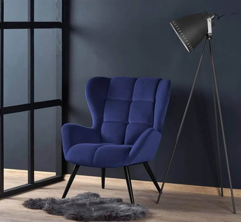 Granatowy fotel do salonu na nóżkach
