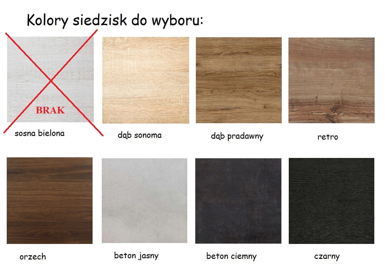 - Kolor: stelaż - czarny, siedzisko - dąb sonoma, beton, dąb pradawny, retro lub orzech