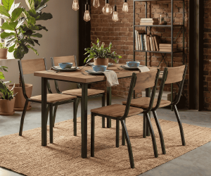 Zestaw śniadaniowy Liton utrzymany jest w stylistyce industrialnej, ale bez problemu odnajdzie się w każdej nowoczesnej kuchni. Dzięki swoim kompaktowym wymiarom stół i krzesła idealnie sprawdzą się zarówno w małych kuchniach, jak i większych jadalniach. Blat stołu bez trudu pomieści naczynia, talerze oraz filiżanki z kawą, tworząc przestrzeń do wspólnych posiłków i rozmów.