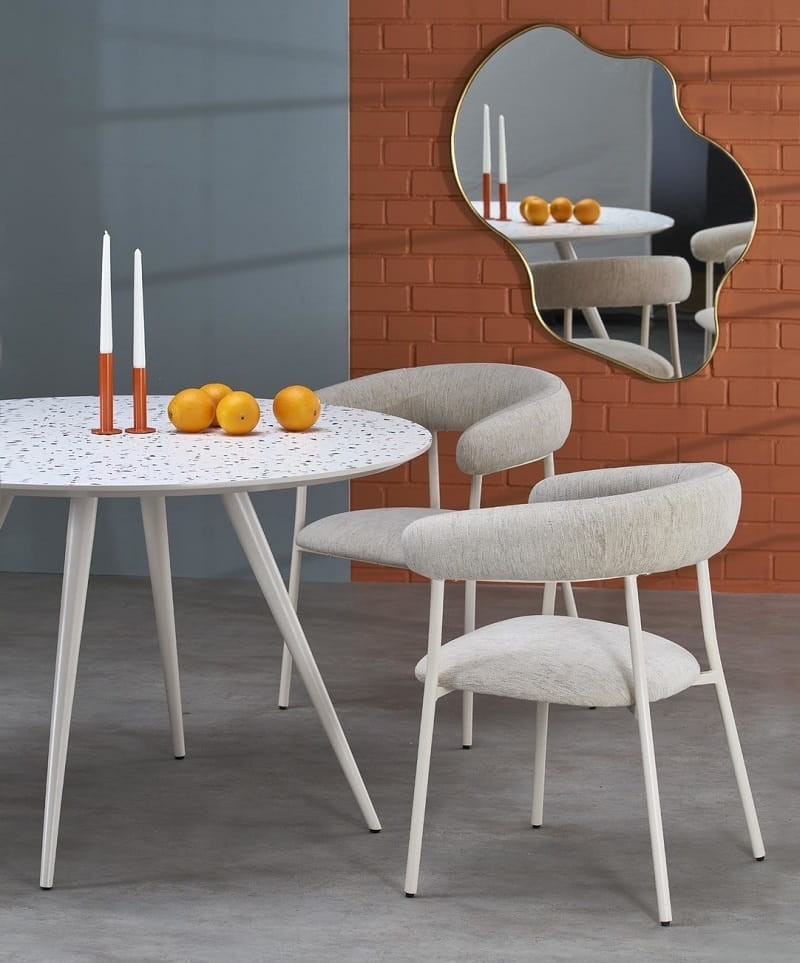 Nowoczesne krzesło z okrągłym oparciem - beżowa harmonia i nowoczesny design w Twojej jadalni