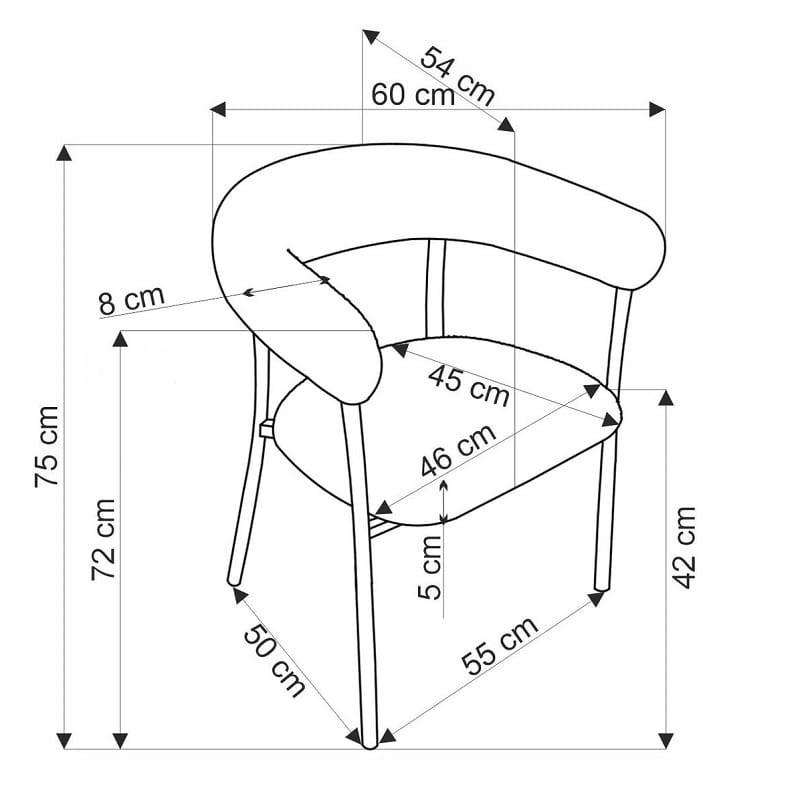 - Wymiary: szerokość - 60 cm, głębokość - 54 cm, wysokość - 75 cm, wysokość siedziska - 42 cm