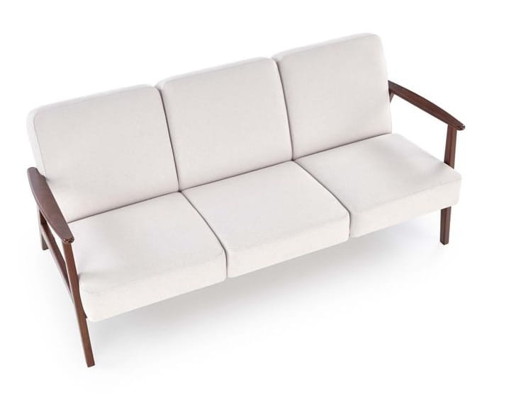 Sofa vintage FOX to mebel, który łączy tradycyjny design z komfortem, jakiego oczekują współcześni użytkownicy. Tutaj tapicerka wykonana z najwyższej jakości tkaniny w jasnym odcieniu beżu doskonale komponuje się z ciemno-orzechowymi, bukowymi nóżkami, tworząc elegancki oraz ponadczasowy duet. Szerokie siedzisko sofy retro i ergonomicznie wyprofilowane oparcie zapewniają z kolei wygodę, która pozwoli Państwu na pełen relaks. Nasza sofa vintage to nie tylko estetyczny dodatek do salonu czy strefy relaksu gdziekolwiek indziej, ale także praktyczne rozwiązanie, które sprawdzi się zarówno podczas codziennego wypoczynku, jak i w trakcie uroczych spotkań towarzyskich.