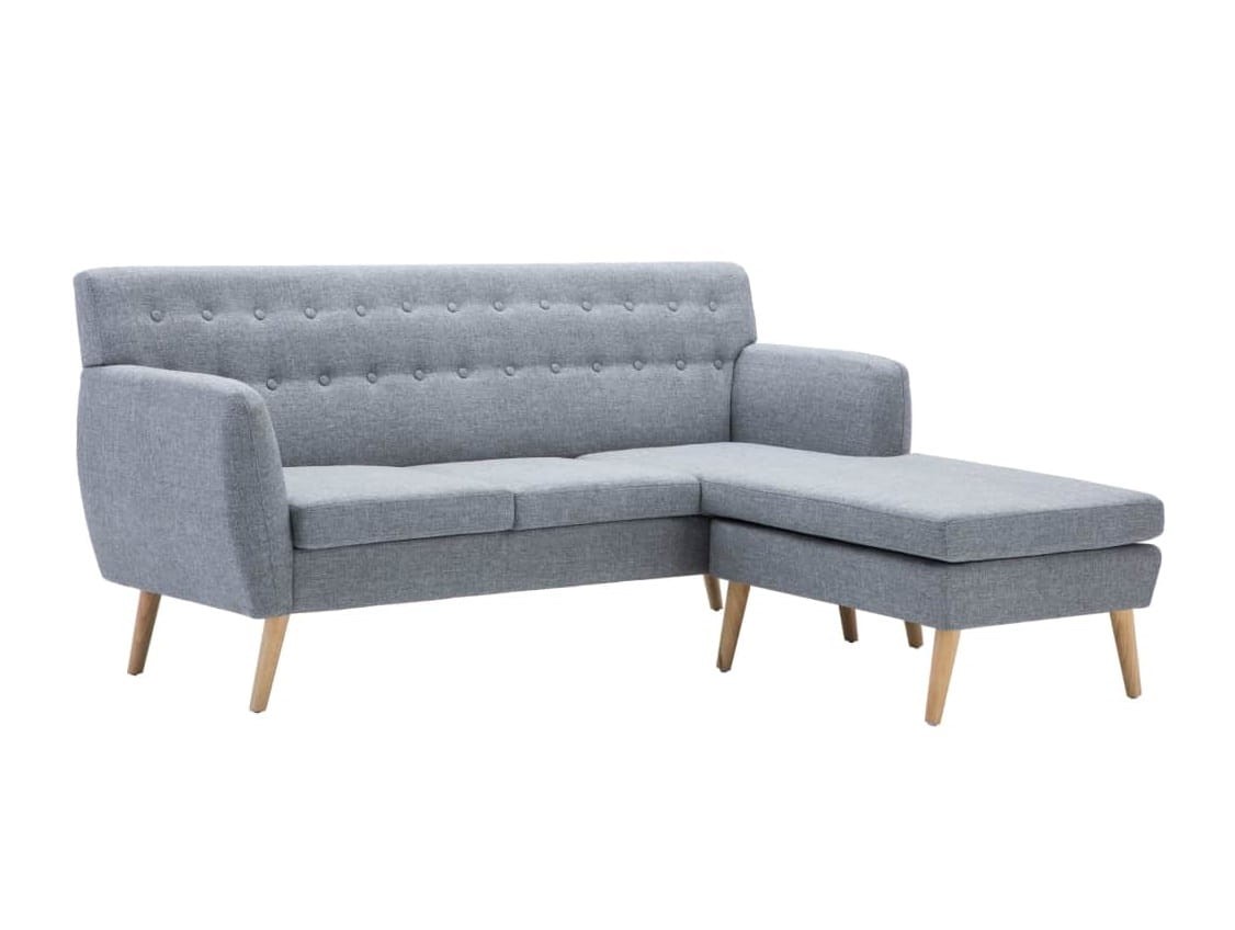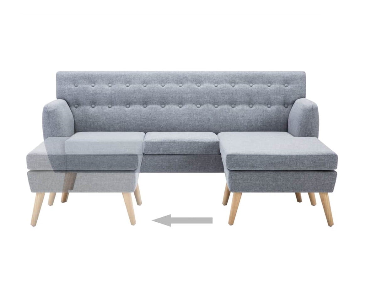 Jasnoszara kompaktowa sofa z leżanką na nóżkach