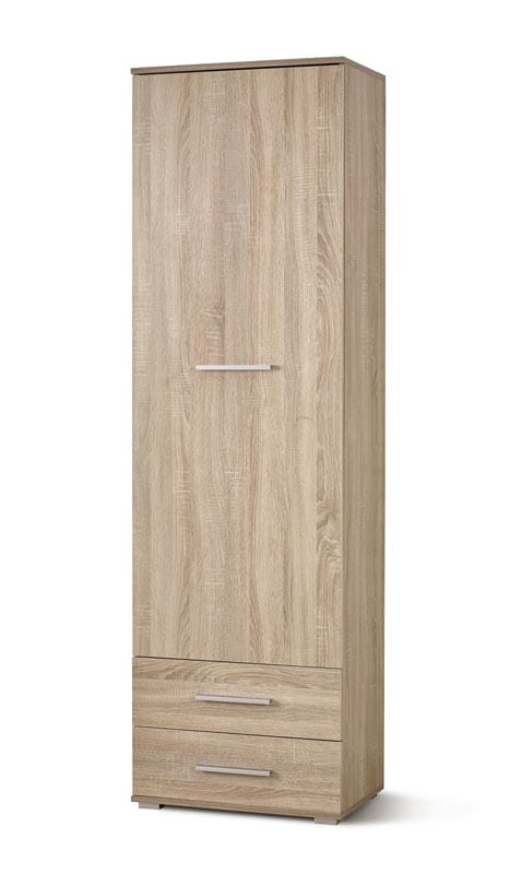 Wąska szafa Kris jest wyjątkowo pojemna, a dąb sonoma model cechuje się tym, że jest nienachalny. Pasuje do pomieszczeń urządzonych w stylu prowansalskim, skandynawskim i minimalistycznym. Wspaniale sprawdzi się czy to w klimatycznie zaaranżowanej sypialni czy to w przedpokoju! Służy nie tylko do racjonalnego przechowywania ubrań, akcesoriów i innych rzeczy. Zdobi wnętrze, optycznie dodaje mu przestrzeni i doświetla ją.