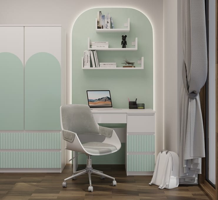 Nasze białe biurko z miętowym nadrukiem na dwóch szufladach to nie tylko praktyczne, ale także stylowe rozwiązanie do przestrzeni pracy i zabawy Twojego dziecka. Prosta konstrukcja zapewnia komfortową przestrzeń do nauki i kreatywności, jednocześnie dodając uroku i młodzieżowego charakteru wnętrzu.
