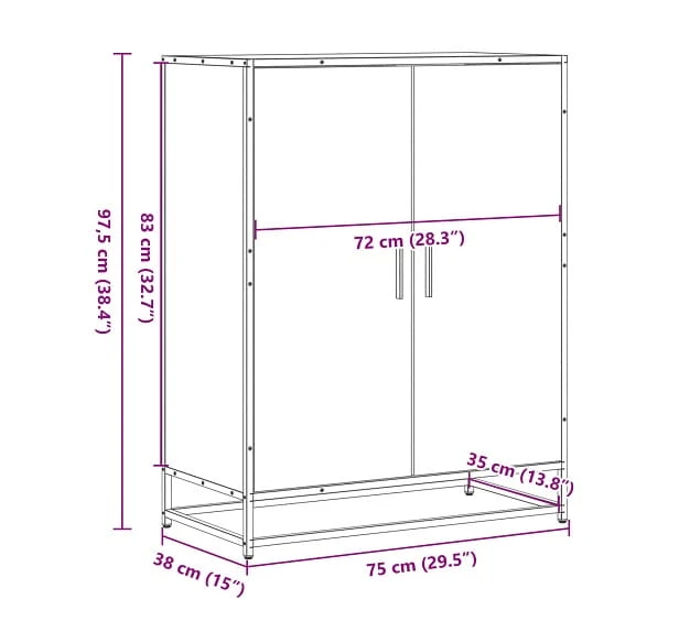 - Wymiary całkowite: szerokość - 75 cm, głębokość - 38cm, wysokość - 97,5 cm