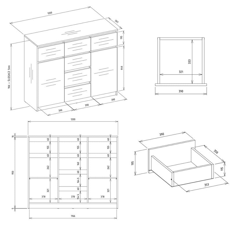 Prawdziwą siłą tego mebla jest jego wszechstronność - sprawdzi się równie dobrze w sypialni jako miejsce na organizację garderoby, w salonie jako stylowe rozwiązanie do przechowywania różnych przedmiotów, w pokoju dziecięcym dla zabawek i ubrań, czy w przedpokoju, gdzie pomoże utrzymać porządek wśród kurtek, szali i akcesoriów. Szuflady wyposażone w wysokiej jakości prowadnice rolkowe poruszają się płynnie i bezgłośnie, co oznacza, że nawet nocne sięganie po potrzebne rzeczy nie zakłóci spokoju domowników.