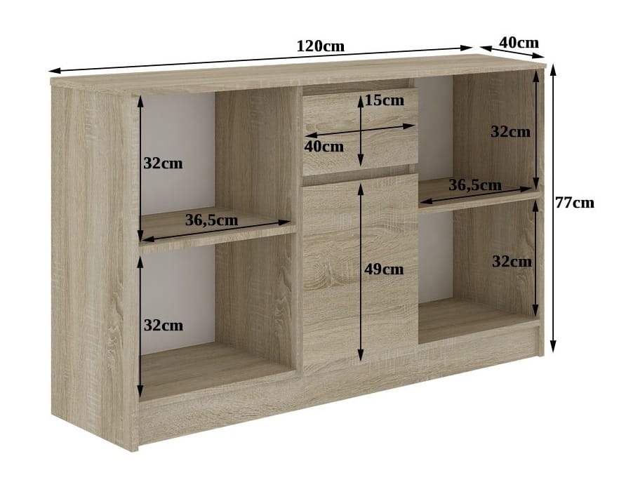 Komoda z szufladą i półkami sonoma 120x77 cm