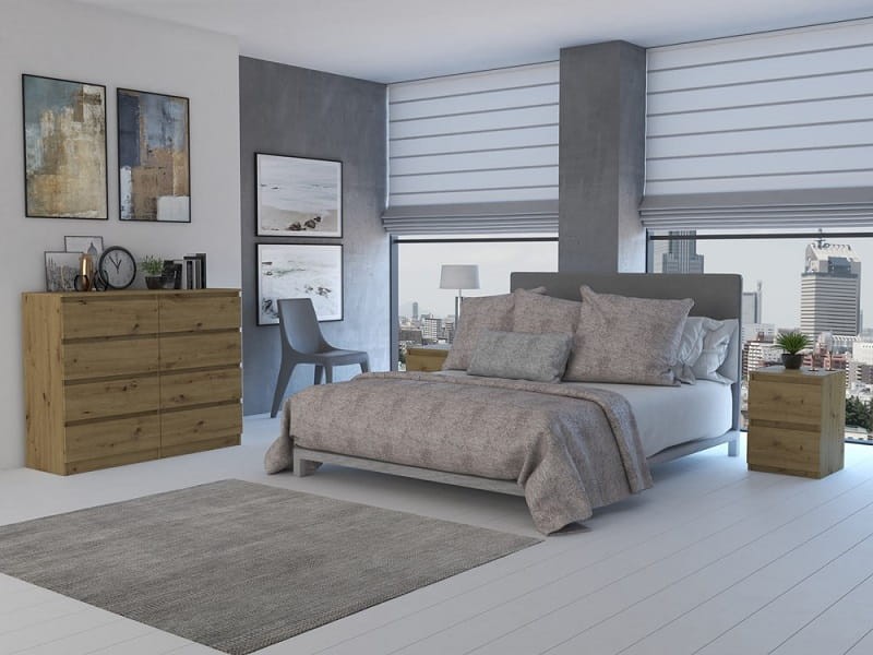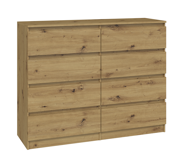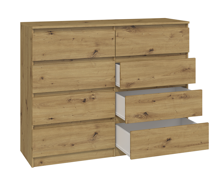 Komoda ta jest dość dużym meblem o szerokości 120 centymetrów. Taki rozmiar umożliwia przechowywanie w niej dużej ilości ubrań i innych potrzebnych do życia rzeczy. Szuflady poruszające się na niezawodnych prowadnicach sprawiają, że korzystanie z mebla jest czystą przyjemnością. Jeżeli dodamy do tego fakt, że do jego czyszczenia wystarczy wilgotna szmatka, tworzy się obraz mebla, który służyć nam będzie bardzo długo bez uszczerbku na jego funkcjonalnych i estetycznych walorach.