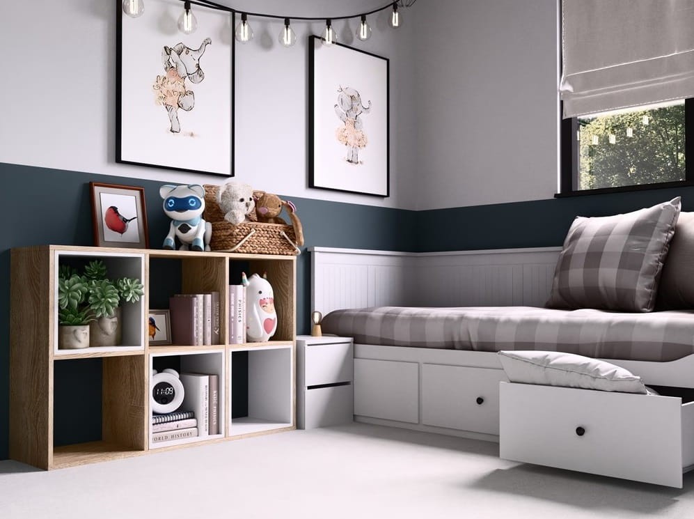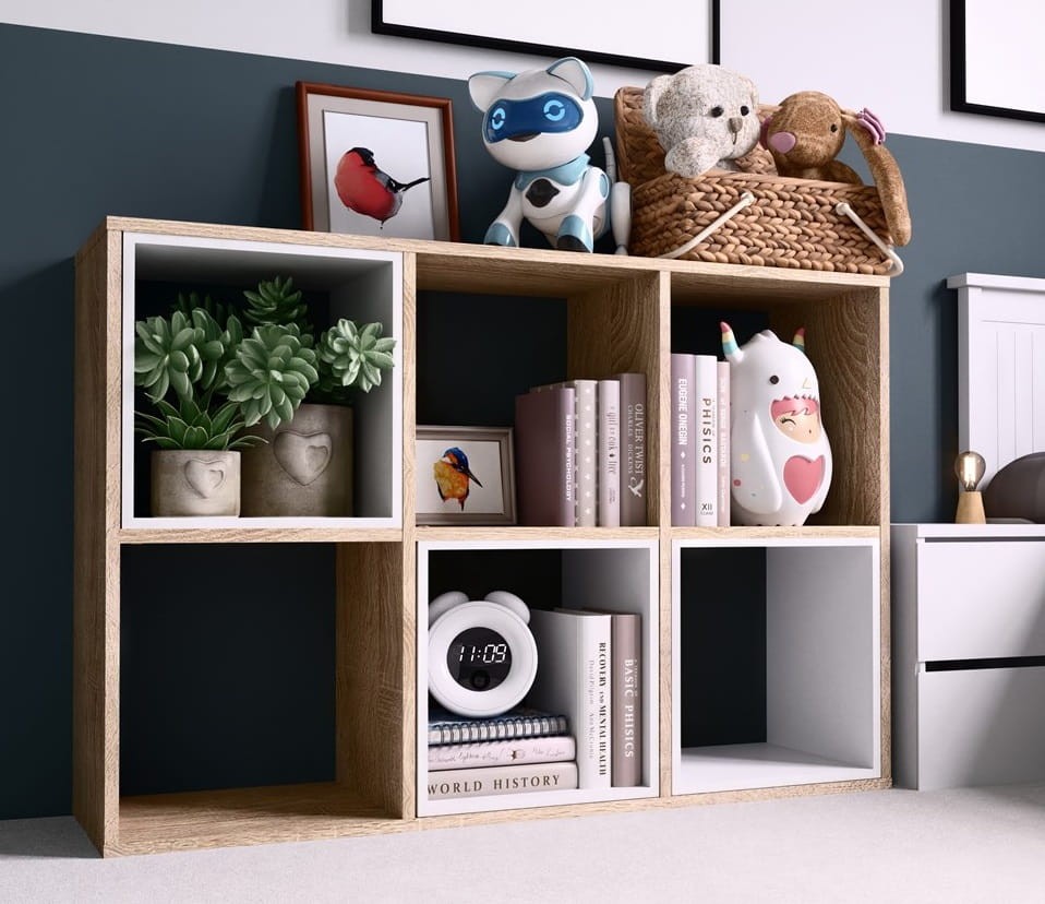 Na sześciu półkach rozlokować można książki lub pojemniki z zabawkami, na szczycie ustawić można dowolne akcesoria ozdobne, lub te, które mają być pod ręką. Tutaj ergonomia gra pierwsze skrzypce! Polecamy!
