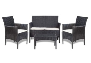 Funkcjonalny zestaw mebli z rattanu do ogrodu lub na taras to świetny wybór, głównie ze względu na trwałość materiału, z jakich jest on wykonany. Jednak poza tym - wyróżnia się on także eleganckim stylem. Czarny kolor rattanu, a także kremowe poduszki na krzesłach prezentują się znakomicie. Modne, grube siedziska poliestrowe są niezwykle komfortowe, a założone nań pokrowce można w każdej chwili zdjąć i uprać. Komplet mebli wielu aranżacjom - i tym typowo zielonym i tym tarasowym - nada charakteru! Posłuży przez wiele sezonów!