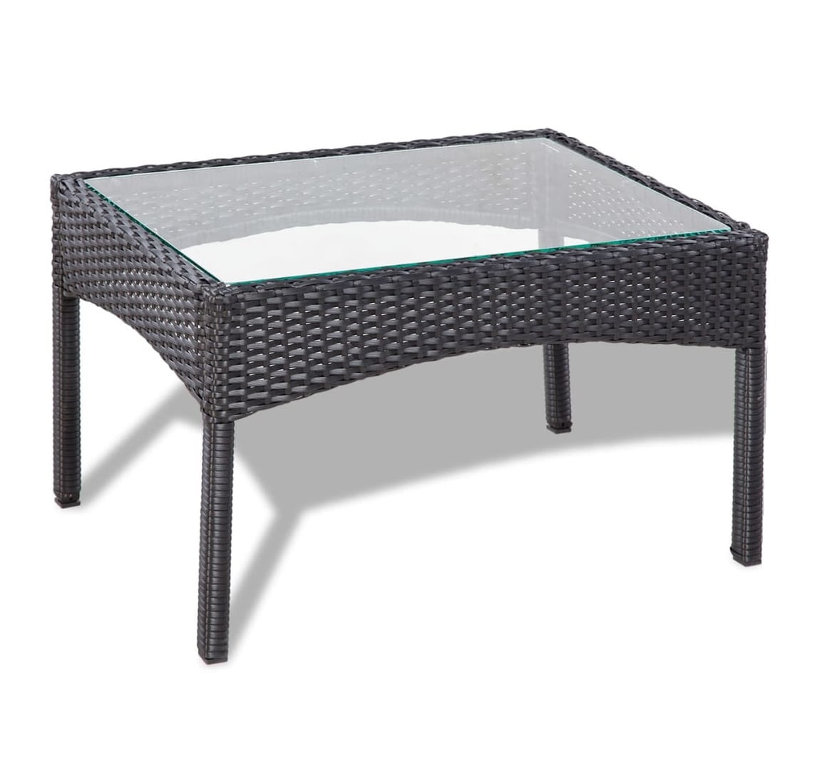 - Materiał: rattan PE (polietylenowy) + kryta proszkowo stalowa rama + szklany blat, poduszki - poliester