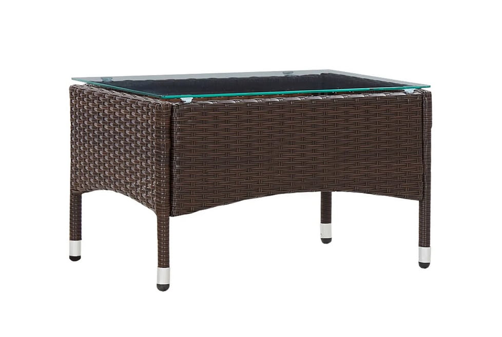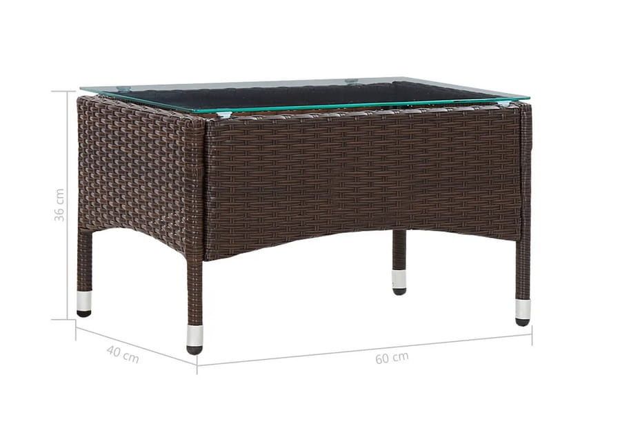 - Materiał: rattan PE (polietylenowy) + kryta proszkowo stalowa rama + szklany blat, poduszki - poliester