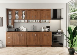 Orzechowa kolorystyka mebli Margon w połączeniu z charakterystycznym ramiakiem na frontach szafek tworzy kompozycję, która przywodzi na myśl ciepłe wspomnienia z wakacji u babci. Te starannie zaprojektowane detale nadają meblom autentyczny retro charakter, jednocześnie zachowując nowoczesną funkcjonalność, której oczekujemy od współczesnych rozwiązań kuchennych.