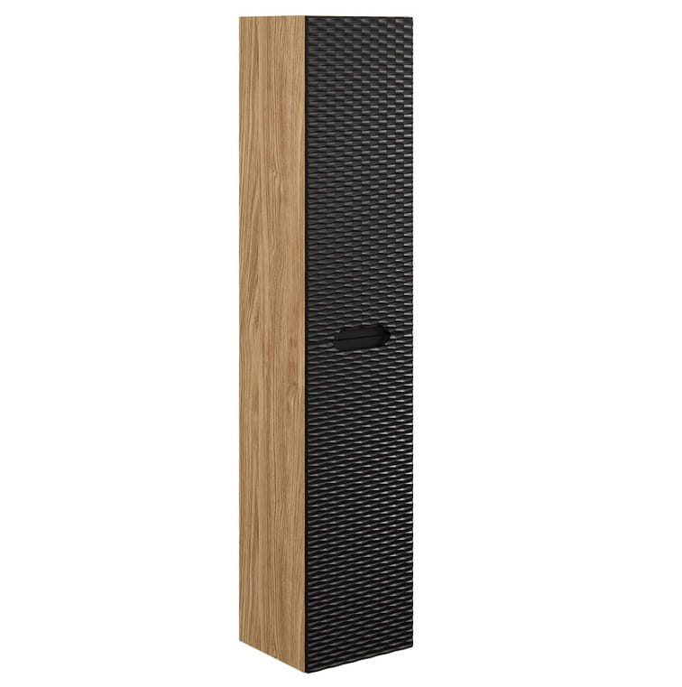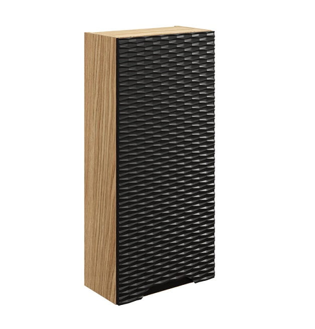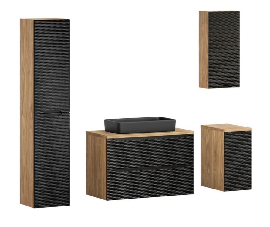 Zestaw mebli łazienkowych Ocean Black to propozycja dla miłośników stylu loft, którzy poszukują eleganckiego połączenia designu i funkcjonalności. W tej kolekcji nie sposób nie zwrócić uwagi na wyjątkowe fronty z trójwymiarowym efektem delikatnych, poziomych fal, które wprowadzają do wnętrza subtelny motyw oceaniczny. Wyraziste, czarne fronty kontrastują z korpusami w kolorze dębu olejowanego, dodając całej aranżacji naturalnej głębi i charakteru. Jest to idealna kompozycja dla osób ceniących spokojną, harmonijną przestrzeń, w której każdy detal ma swoje przemyślane miejsce.