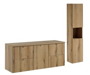 Poszukujesz wiszących mebli do łazienki, które odmienią wnętrze Twojej przestrzeni? Przedstawiamy ekskluzywny zestaw mebli łazienkowych Nova, który zachwyca nie tylko swoim wyglądem, ale przede wszystkim przemyślanymi rozwiązaniami. Szlachetny dekor dębu coast evoke perfekcyjnie imituje naturalne drewno, nadając wnętrzu ciepły, przytulny charakter, a chromowane uchwyty dodają całości nowoczesnego sznytu.