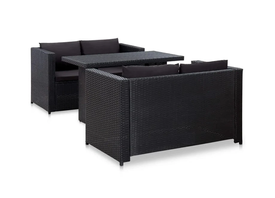 Komplet mebli ogrodowych sofy ze stołem czarne rattan PE