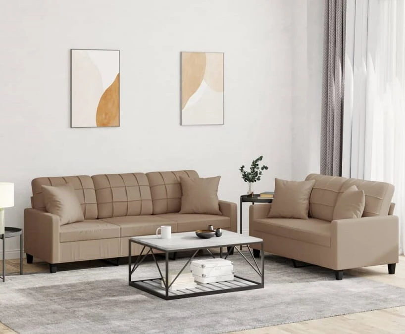 Komplet mebli wypoczynkowych z poduszkami cappuccino