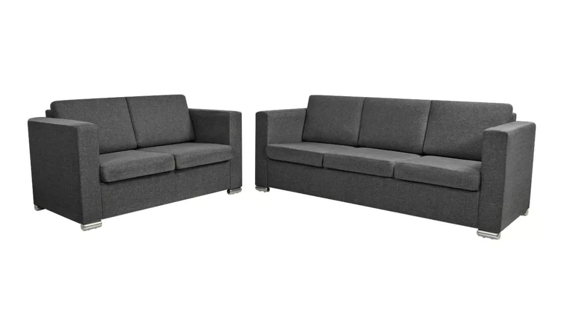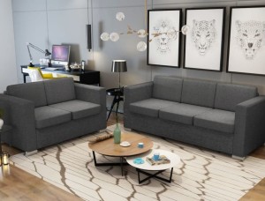 Sofa dwuosobowa i sofa trzyosobowa wchodzi w skład tego pięknego zestawu. Każda z nich wyposażona jest w komfortowe oparcia i grube poduszki, tapicerowane wysokiej jakości trwałą tkaniną.