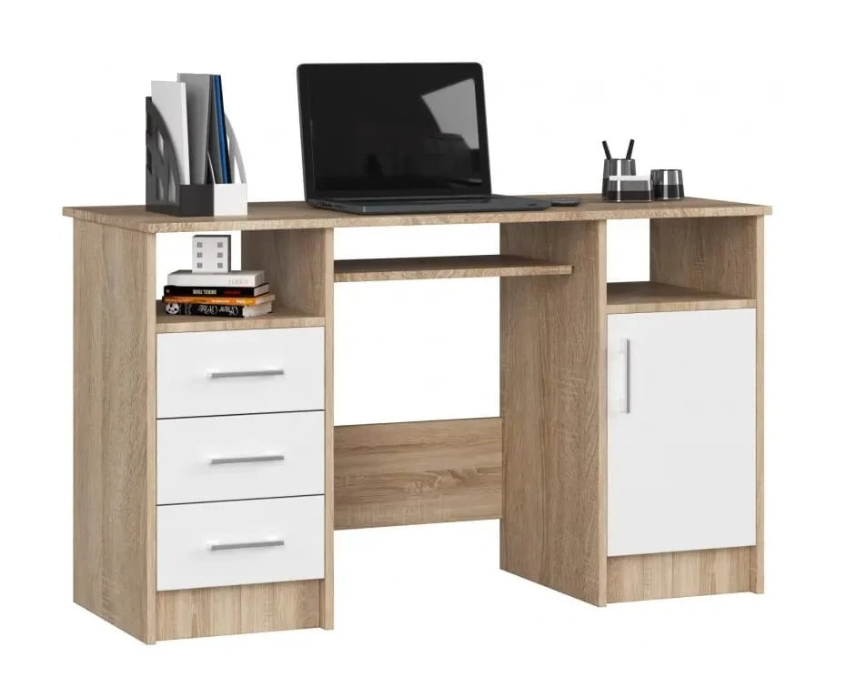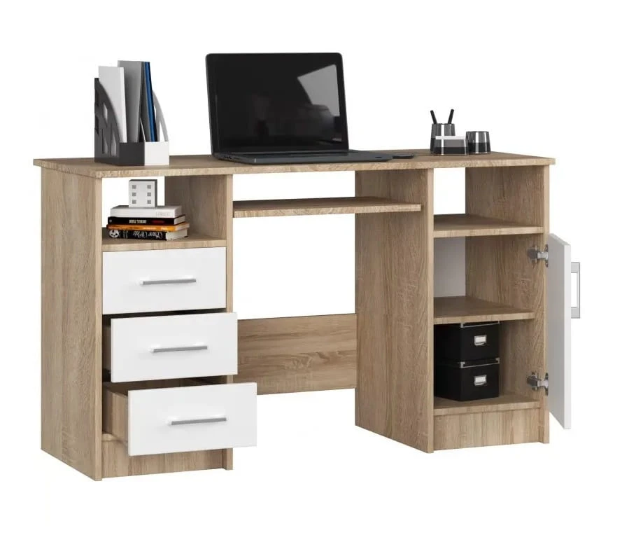 Komputerowe biurko szkolne z szafką i szufladami sonoma/biały