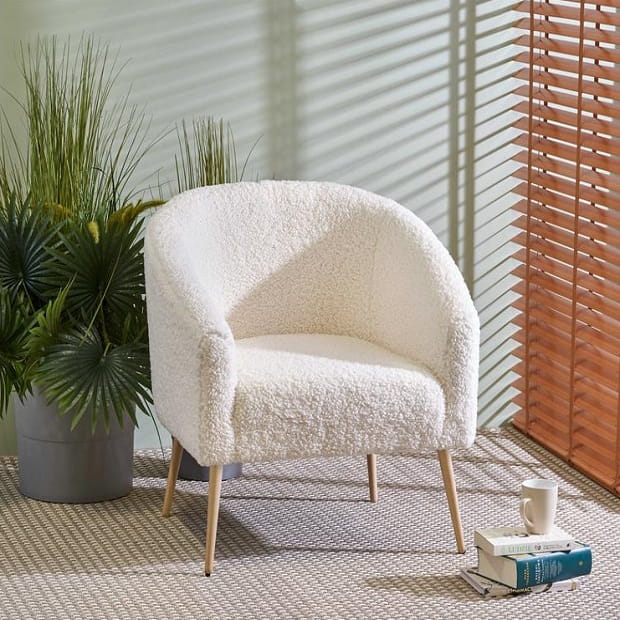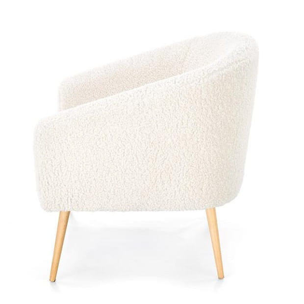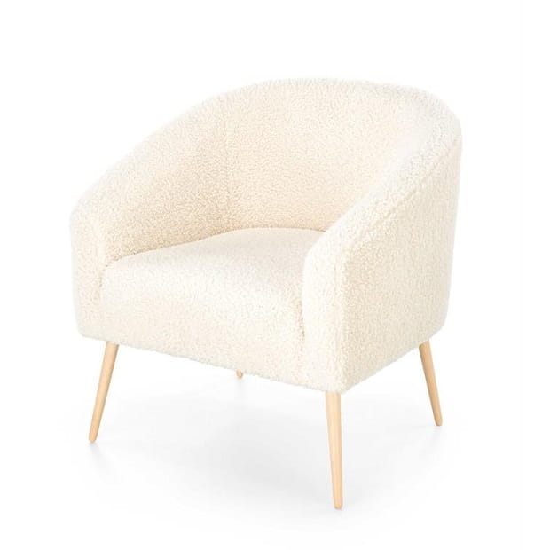 Siadając w fotelu Harlin II można nieco cofnąć się w czasie. Mebel obity jest tkaniną bouclé, która przypomina powracające do mody meble z lat młodości. Tkanina wykonana jest w sposób „pętelkowy”, więc z pewnością jest meblem bardzo oryginalnym, który ogrzeje każde pomieszczenie. Jego kremowy kolor wpasuje się we wszystkie wnętrza, jest bardzo uniwersalny.