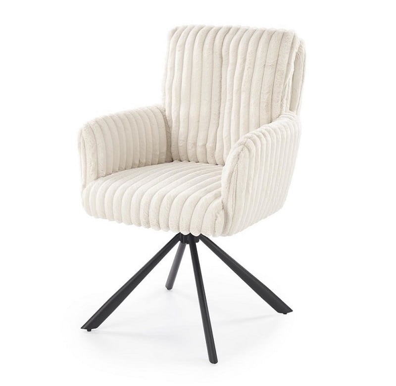 Kremowy fotel do jadalni z podłokietnikami