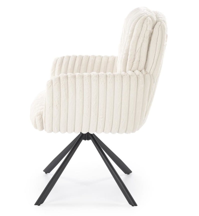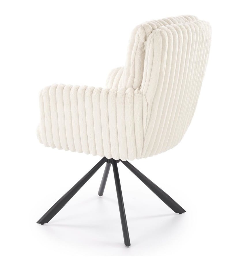 To modne krzesło do jadalni wyróżnia się nowoczesną formą, na prostych nogach o owalnym przekroju, które przypominają strukturę pajęczaka. Designerska tapicerka imitująca sztruks sprawia, że każde siedzenie staje się przyjemnością. Materiał Vito, z którego wykonano siedzisko, jest wyjątkowo miękki w dotyku, co gwarantuje komfort nawet podczas wielogodzinnych posiedzeń przy stole. Dodatkowo, wygodne podłokietniki pozwolą Ci zrelaksować ręce, co czyni to krzesło doskonałym wyborem na długie rodzinne obiady czy towarzyskie spotkania.